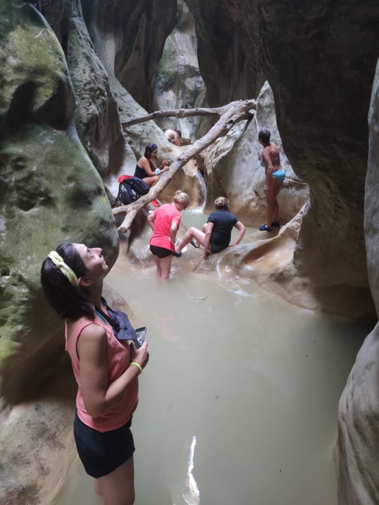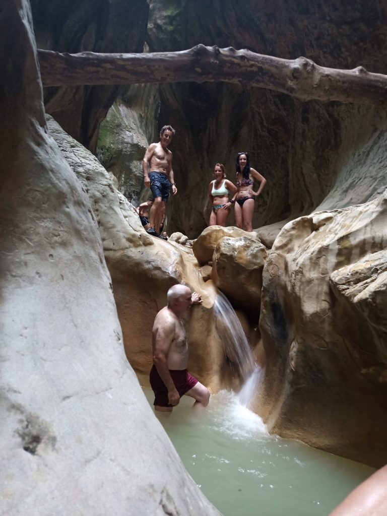 El modelat de les roques es d’una gran bellesa, impressionant, i estar allà dins ens imposa. Seran uns pocs valents i valentes qui faran l’últim tram, nedant a trossos i pujant salts d’aigua.