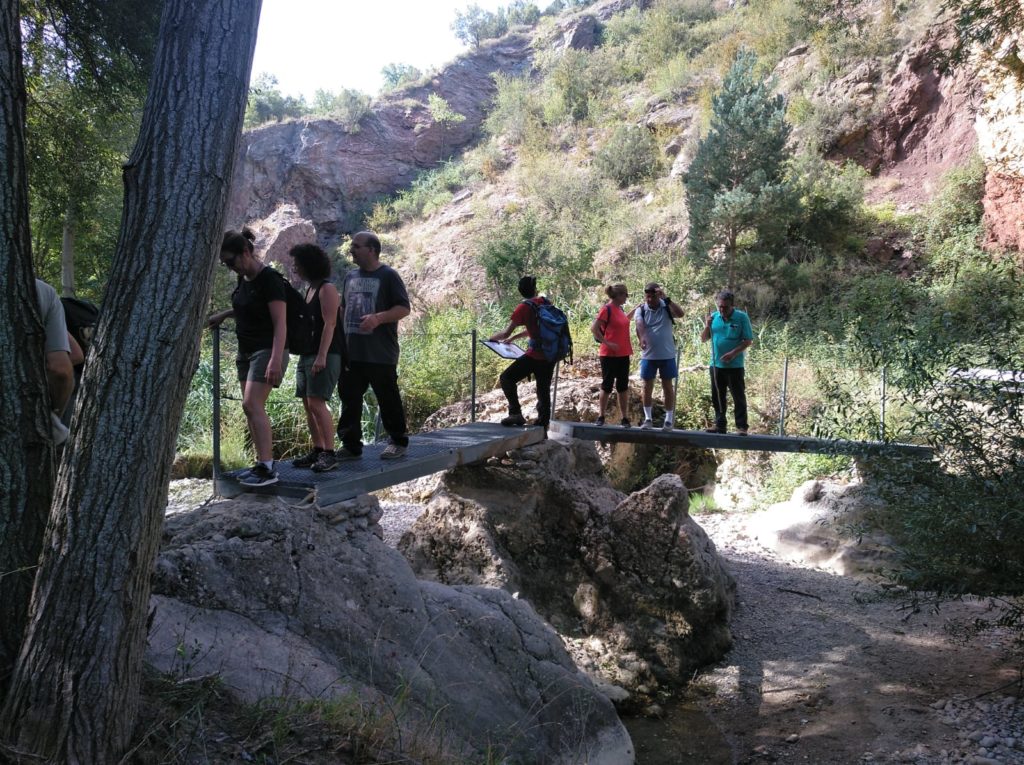 A la segona parada ens fixem en les roques calcàries i “dolomies” fètides. A la tercera parada vam parar atenció a materials molt vistosos, els de Keuper, argiles de colors i “ges” blancs. A la quarta parada les ruïnes d’un antic molí que aprofitava la força motriu del riu.