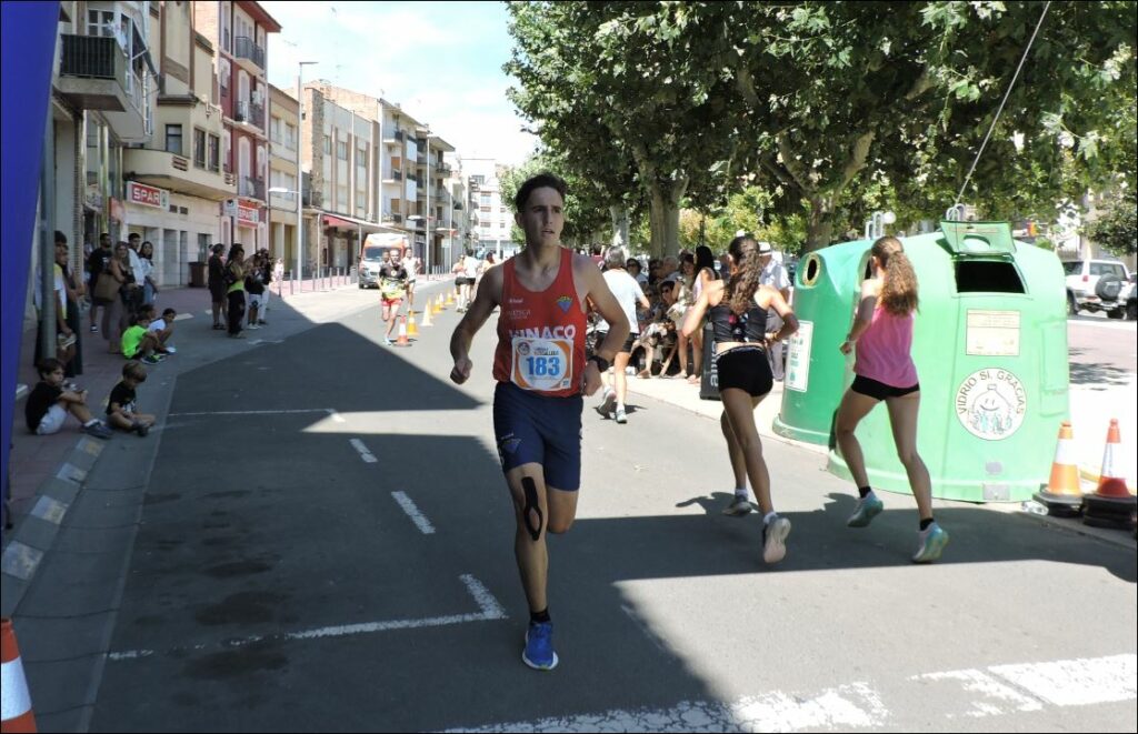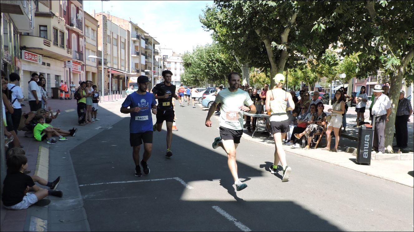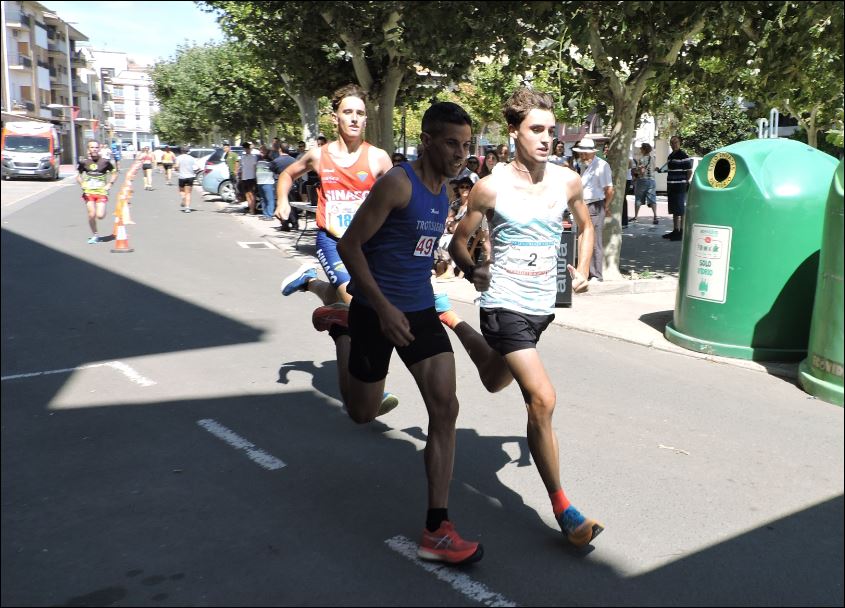 Antes de llegar a la mitad de las 30 vueltas al circuito, para completar unos 8 kilómetros, Castells ya tensaba la cuerda con sus más inmediatos perseguidores, que poco a poco fueron perdiendo comba. Primero se quedó Saúl Alcalde, que ya había realizado algún exceso en la disputa de primas, viendo pocas opciones de ganar a los que iban por delante. Luego seguía en ejemplo Carlos Zárate, guardando fuerzas para la carrera de por la tarde en Bujaraloz. Al final la jugada le salió bien. Y, por último, Abdelhak Sabhi, con mucho esfuerzo y sacrificio consiguió la segunda plaza. La lesión que le ha mantenido alejado de Aragón en los tres últimos años le sigue pasando factura.