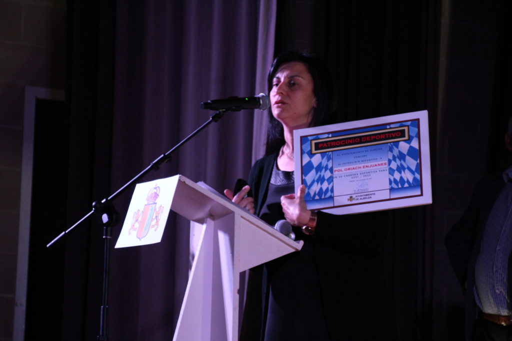 El primer reconocimiento fue para «Phondy» su entrenador, que destacó la calidad humana y profesional de Carlos y Pol Oriach. De manos de la alcaldesa, Pol, recibió sendos cheques patrocinio por un total de 3.000 € para las dos próximas temporadas. El atleta manifestó su agradecimiento por el apoyo y la calidez recibida de su pueblo testigo de su esfuerzo: “Estoy muy contento de haber nacido en Albelda y de haber vivido aquí estos momentos tan bonitos que espero que duren mucho más y que los pueda compartir con todos vosotros, porque estoy muy contento de ser albeldense y de vivir en Albelda”. A continuación, con la mano en el corazón, Carlos Oriach su padre, dijo “Tenemos que estar orgullosos de este atleta, y no tenemos que tener ningún complejo. El hecho de vivir en un pueblo hay cosas que nos limita, pero en otras, como puede demostrar Pol, no hay límite: el límite nos lo pondremos nosotros, y nos lo pondrá la suerte y la salud, sobre todo”.