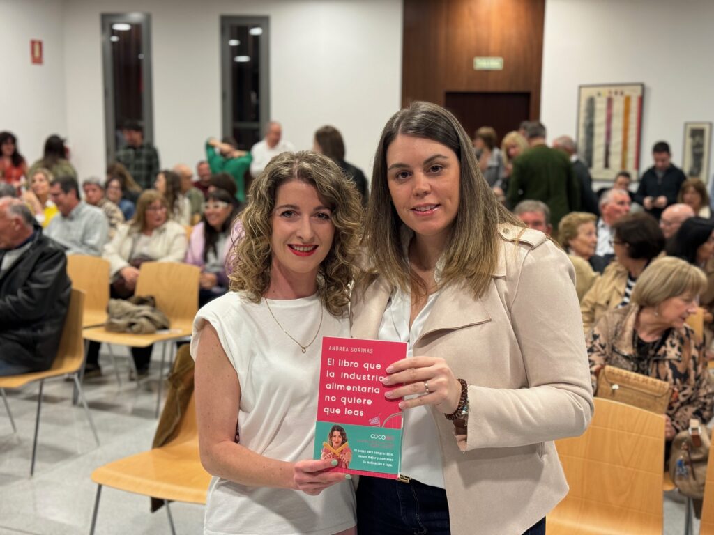 El Salón de Plenos del Ayuntamiento de Binéfar se quedó pequeño en la tarde noche del sábado en la presentación de ‘El libro que la industria alimentaria no quiere que leas’, escrito por la nutricionista binefarense Andrea Sorinas y publicado por Libros Cúpula, sello de la editorial Planeta. El acto estuvo organizado por la Concejalía de Bienestar Social, cuya responsable Beatriz de Pano agradeció que Andrea Sorinas aceptara la invitación para presentar su obra en su localidad natal y destacó el interés suscitado entre el público por cuestiones relacionadas con la salud y una buena alimentación. Entre los asistentes, también estuvieron presente la alcaldesa Patricia Rivera y el concejal de Educación y Festejos, César Pardos.