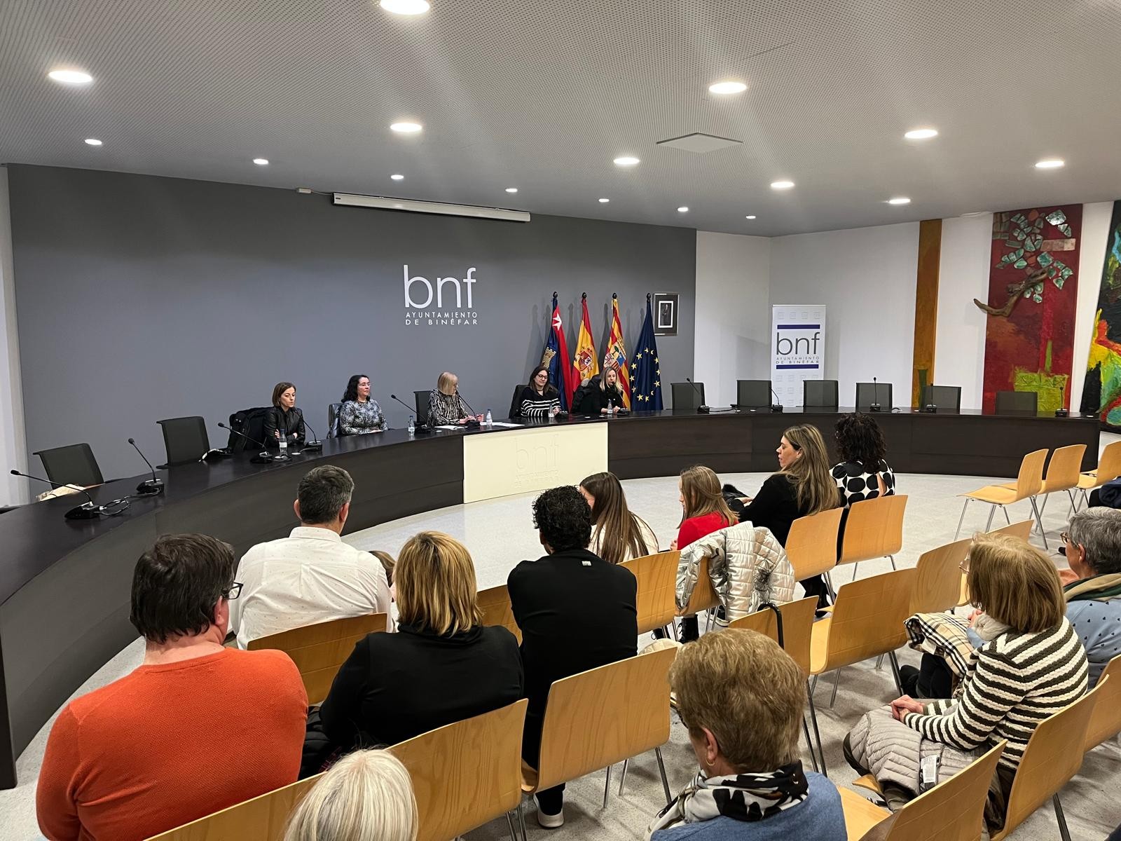 El Salón de Plenos del Ayuntamiento de Binéfar volvió a acoger por segundo año consecutivo, con motivo del Día Internacional de las Mujeres, una mesa redonda en la que se ha visibilizado el papel de mujeres profesionales que se han abierto camino con éxito en un ámbito laboral masculino.