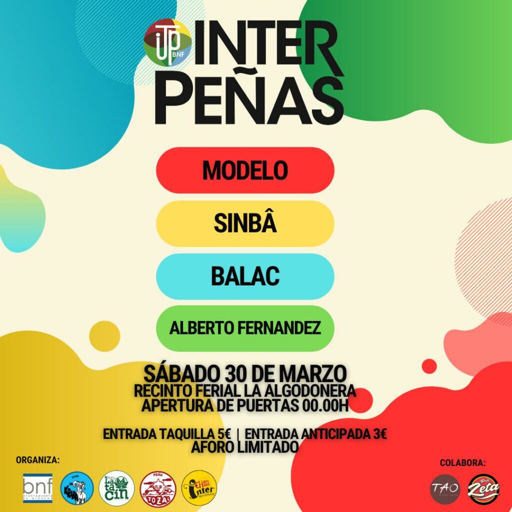 El sábado 30 Interpeñas ha organizado una fiesta en el recinto ferial de La Algodonera a partir de la medianoche y con aforo limitado. Los grupos que actuarán son Modelo, Sinbâ, Balac y Alberto Fernández.
