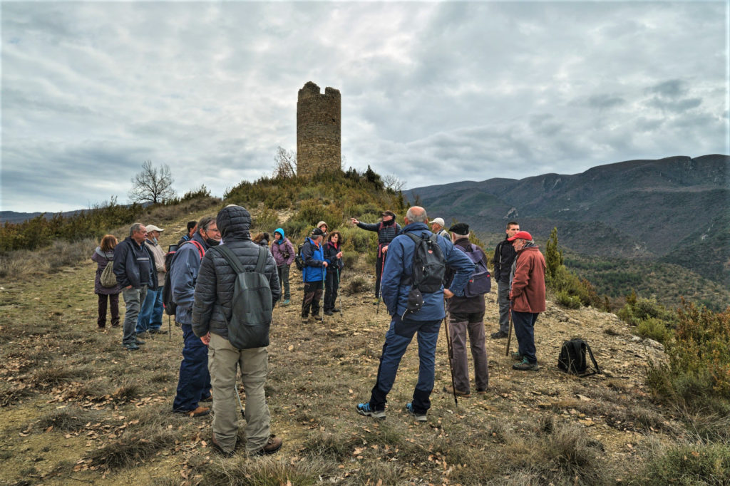 A partir d’ara, ens caldrà anar cap al Nord, pel camí que des del Castell es dirigeix cap el poble. Aquí, podem fer una bona observació de les cases, de la pedra seca utilitzada per les tanques dels carrers. També, podem fer una bona observació del Congost de Mont-Rebei, que se aprecia bé, mirant cap al Sud. Seguim cap al Nord, apropant-nos cada vegada més al poble, més amunt, després de deixar per l’esquerra el camí de Montgai.