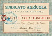 El 2 de setembre de 1918 va veure la llum el Sindicat Agrícola d’Alcampell, a l’empara de la Llei d’associacions de 30 de juny de 1886 i de la Llei de sindicats agraris de 28 de gener de 1906, que principalment va aplegar grans i mitjans propietaris. El seu primer president fou Antonio Pena Cagigós. Va ser un sindicat clarament conservador i de caràcter catòlic, tal com indicava el seu lema: “Unos por otros y Dios por todos”.