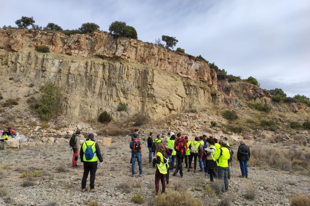 Seguidamente nos dirigimos hacia la cantera de calizas de Nachá, calizas de las facies del Muschelkalk. Tras observar el patrimonio de dicha cantera nos dirigimos hacia el vértice la colina donde se encuentra la población.