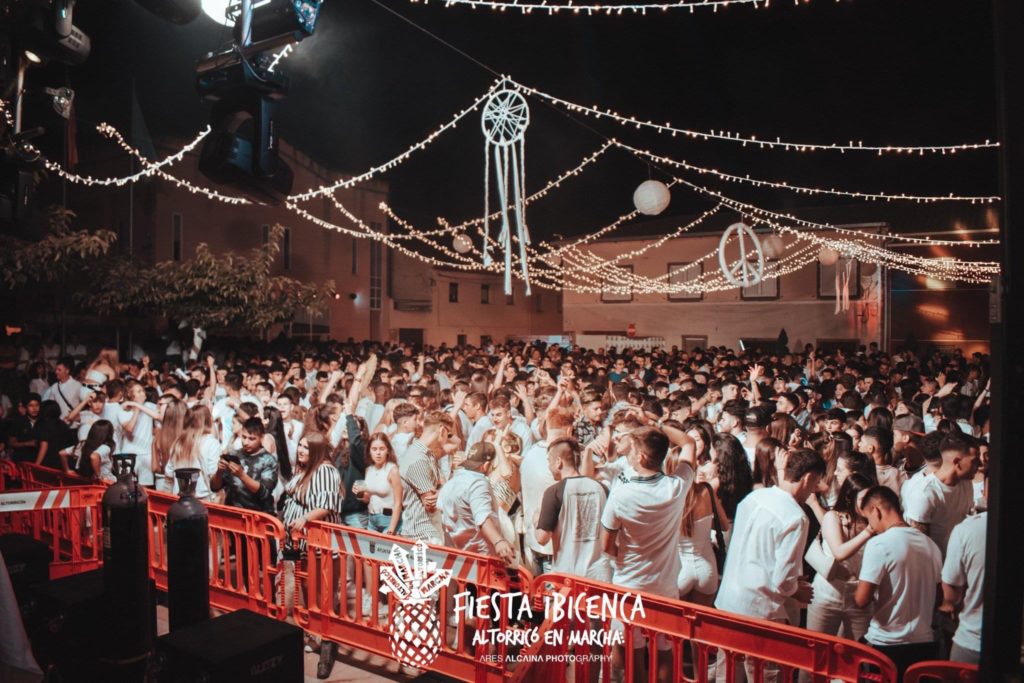 Si queríamos una fiesta por todo lo alto y lo hemos conseguido. Invertimos en hacer las cosas bien, cumplimos la normativa, contratamos camareros y seguridad privada aunque por normativa en espacios libres no es necesaria. La ibicenca ha sido un éxito y estamos muy contentos, pero sobre todo lo que más nos llena es que se ha respetado mucho el espacio público y no han habido incidencias importantes. En la caseta de tickets teníamos un Punto Lila, colgamos carteles en varios puntos del pueblo CUIDA LOS ESPACIOS PÚBLICOS Y DISFRUTA DE LA FIESTA, en el reverso de los tickets escribimos, NO SOMOS UNA EMPRESA, LO HACEMOS POR AMOR A ALTORRICÓN, el mensaje era que se hace por amor al arte y que cuesta mucho esfuerzo. Y la seguridad es muy importante, frenan enseguida el conflicto. Intentamos llegar a todo, hacer lo máximo para que salga bien y nos divirtamos tranquilos.