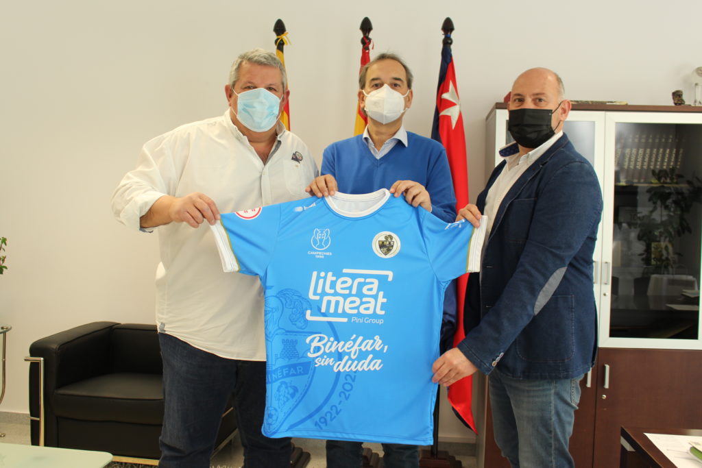 El patrocinio publicitario del Ayuntamiento de Binéfar estará vigente para la presente temporada 2022 –conmemoración de los primeros cien años de historia de la entidad deportiva- y tiene como objetivo la mejora de la imagen corporativa municipal, así como asociar ésta positivamente a los valores del deporte, al tiempo que se promociona la actividad turística y económica local. Alfonso Adán explicaba que “hemos querido apoyar a este club histórico, no solo en nuestra localidad, sino en los anales del fútbol nacional, con motivo de su centenario con este contrato de patrocinio, que pretende además difundir el nombre de nuestra villa con el mismo eslogan que ya utilizamos para promocionar el comercio y las empresas locales durante los peores momentos de la pandemia. Ahora será la entidad deportiva la que lo llevará por todo Aragón en su camiseta”.