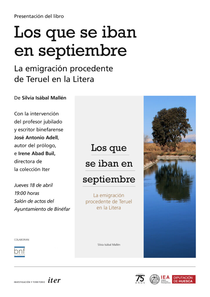 Así la primera presentación será el próximo jueves 18 a cargo de la historiadora Silvia Isábal Mallén que dará a conocer su último trabajo ‘Los que se iban en septiembre: la emigración procedente de Teruel en la Litera’. Será en el Salón de Plenos del Ayuntamiento de Binéfar a las 19.00 h. Y el día 20 será el turno del sociólogo de Alcampell, Josep Esplugas Trenc que ofrecerá una radiografía del Binéfar de los 80 reflejada en su libro ‘El año que boicoteamos a Leonard Cohen’. La presentación será a las 12.00 h. en el Salón de Plenos del Ayuntamiento.