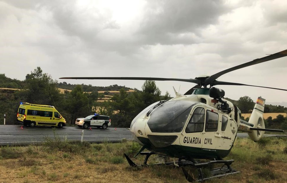 Una patrulla del Destacamento de tráfico de Barbastro se ha dirigido al lugar y se ha iniciado el recorrido de la zona en busca de frenadas o signos de la salida de algún vehículo de la vía. Al ser infructuosa la búsqueda y no localizar ninguna marca en la carretera que pudiera indicar el lugar del accidente los agentes han realizado una batida a pie de la zona en el tramo desde Benabarre hasta Puente de Montañana, también han acudido al lugar, bomberos, ambulancias y helicóptero de la Unidad Aérea de la Guardia Civil con base en Benasque, GREIM de Benasque y médico del 061.