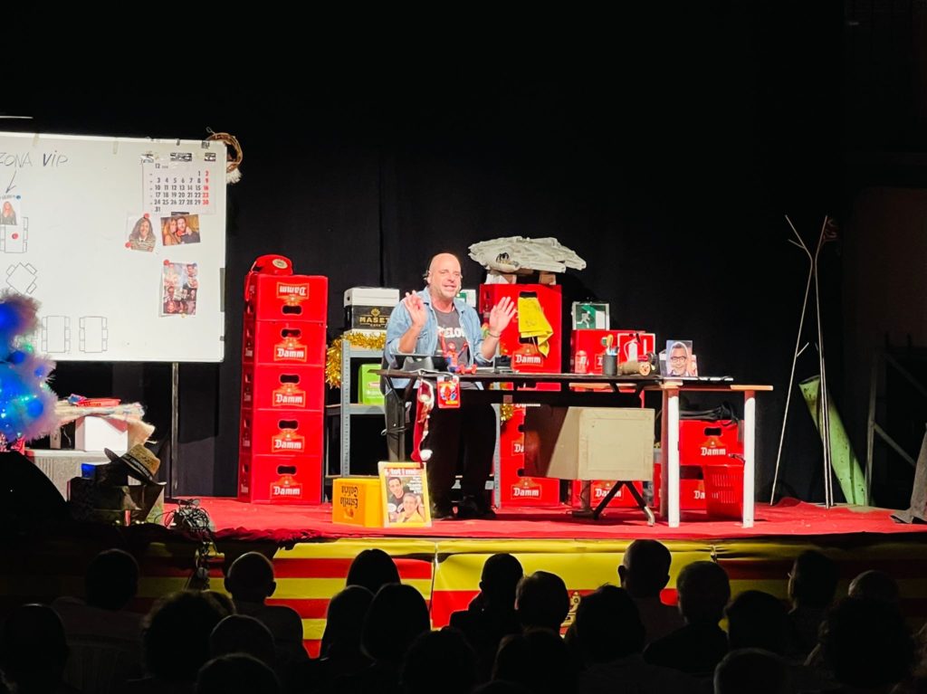 El viernes 20, Roger Pera se puso en la piel de más de 26 personajes y 26 voces diferentes durante la hora y media que duró «Quina feinada». Pera, maestro de la locución y la interpretación hizo disfrutar a un público entregado a su humor y pasión sobre el escenario situado en la Plaza de la Iglesia de Camporells que albergó más de 200 personas.