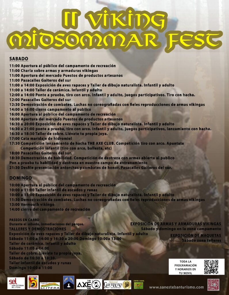 Bajo la denominación de VIKING MIDSOMMAR FEST Las jornadas de recreación histórica vikinga se celebrarán en San Esteban de Litera los días 5, 6 y 7 de julio de 2024. Este evento se consolida como una de las citas culturales más esperadas de la localidad, destacándose por su singularidad en Aragón. La propuesta incluye una inmersión completa en la era vikinga, con actividades variadas que van desde recreaciones fieles de campamentos y demostraciones de combates, hasta talleres y mercado artesanal. Este evento único en Aragón promete sumergir a sus visitantes en la era vikinga a través de actividades diversas y enriquecedoras, destacando la importancia cultural, educativa y turística de la recreación histórica.