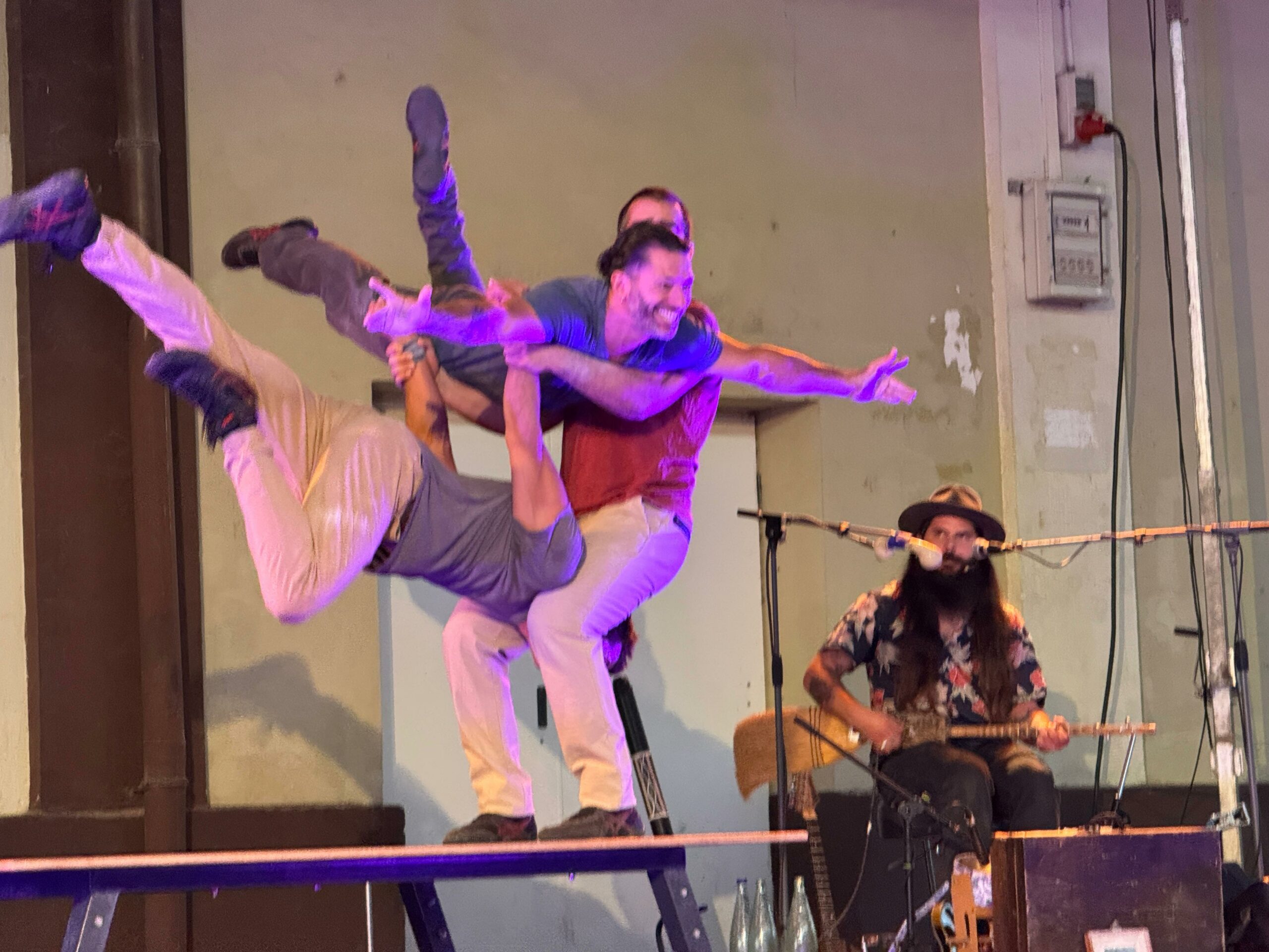 El fin de fiesta ha sido por todo lo alto de la mano de Circ Pistolet (Cataluña) con un espectáculo circense que ha dejado a todos los asistentes con la boca abierta. Un escenario desordenado…los acróbatas llegan tarde…y el músico, ¿dónde está? Este es el pistoletazo de salida de este nuevo espectáculo. Un portor que manda y lo quiere controlar todo a pesar de que nadie le hace caso… Un ágil-verticalista desgarbado, juguetón y con mucho ritmo… un acróbata, novel y despistado y con poca auto-estima… Y un músico con delirios de grandeza y recuerdos de un pasado mejor… ¿Qué puede salir de este cóctel tan diverso y explosivo? ¿Se llegarán a poner de acuerdo para hacer el espectáculo? ¿Serán capaces de encadenar más de una figura sin equivocarse? ¿Tendrá final tanta tontería? De Kentucky a Terrassa, pasando por Rubí vía Misuri con una pequeña escala en Londres. Un gran viaje delirante a ritmo de rock, con acrobacias sobre mesa, verticales, minibáscula y equilibrios de manos a manos ¡en dúo y trío!