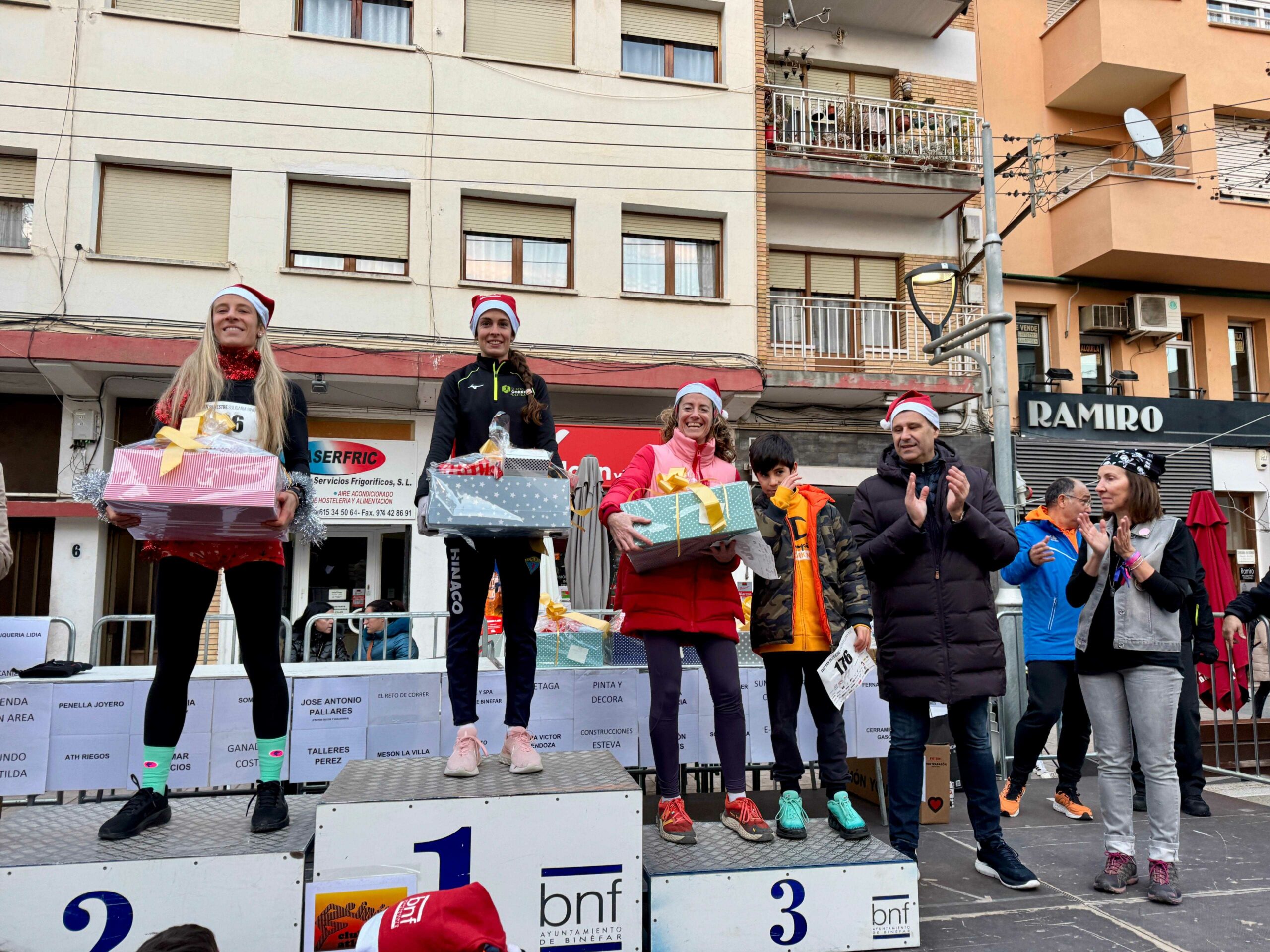 El premio al grupo más numeroso ha recaído en los corredores del Club de Tenis y Pádel de Binéfar. Mientras que la victoria en la categoría absoluta ha recaído en el montisonense Javier Castel y la barbastrense Verónica Escartín, ambos de El reto de correr. Los segundos clasificados han sido los binefarenses Alberto Bailac, del Hinaco Monzón, y Alba Raso, y los terceros los también locales Álvaro Foj y María Mallén.