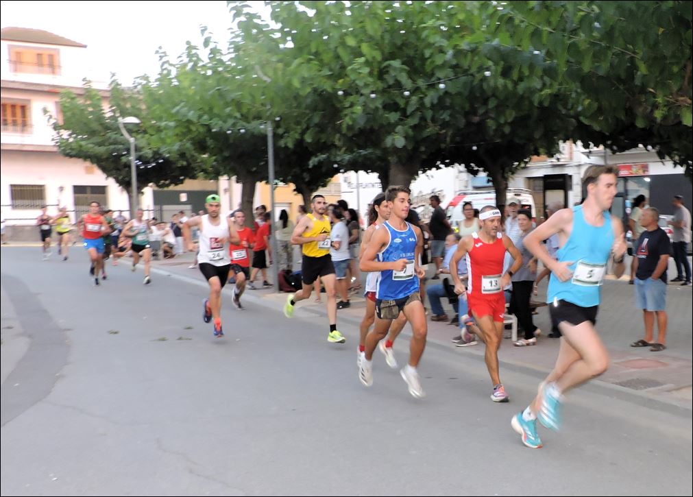 Entre los hombres, durante las primeras vueltas fueron protagonistas los atletas del club Alcampo Scorpio de Zaragoza, Miguel Guillén, Pablo Zárate y Mauro Larroy, disputando primas. Pronto el pelotón cabecero quedó reducido a un selecto grupo formado por Denis Lorda, de Zuera: los zaragozanos Nacho Dieste y Andrés Mata, y los montisonenses Jehad Janati, Alberto Susín y Javier Castells. Detrás, sin opciones, quedaron Marc Martínez, de Alcañiz; Paco Sahún, de Barbastro, Mariano Val, de Zaragoza y David Ezquerra, de Sariñena. Otros corredores de la comarca, como Óscar Celma, de Tamarite de Litera; Andrés Aguarón, de Binéfar, o Jesús Ortiz y Gabriel Ortiz, ambos de Costean, llevaban su lucha particular con los locales Saúl Alcalde, Ousmane Coulibaly y David Alonso.
