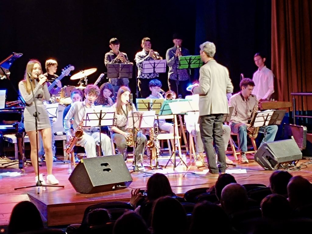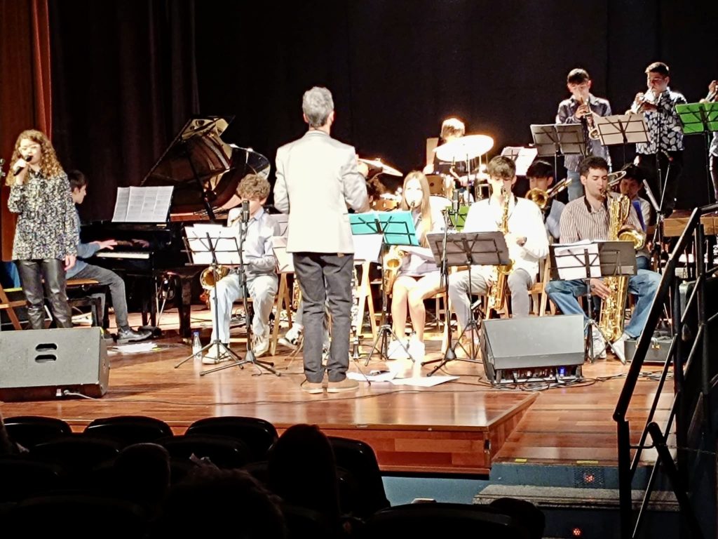 Música de big band como las de antes, pero con los futuros músicos de jazz de Aragón. Eso se ha podido ver y escuchar esta tarde en un Teatro Municipal Los Titiriteros de Binéfar -con buena afluencia de público- en el ecuador del VI Ideal Jazz Fest. Si el festival, enmarcado dentro del Alto Aragón Jazz Tour que promueve la Diputación Provincial de Huesca y que organiza la Concejalía de Cultura del Ayuntamiento binefarense se abrió con una elegante sesión de jazz a cargo del maestro guitarrista Alfons Enjuanes y su banda, lo de esta tarde ha sido una auténtica fiesta.