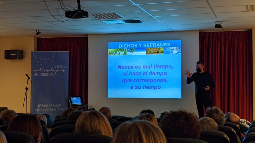 A continuación, Eduardo Lolumo, impartió una interesante, y enriquecedora charla sobre “El clima de Aragón a través de sus paisajes” ante un numeroso público que se dio cita en el Salón de Actos de la Casa Cultural.