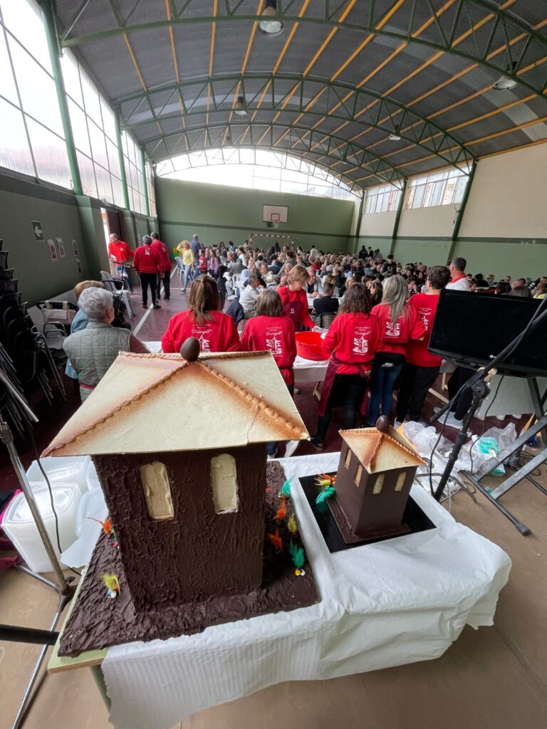 Siguiendo la tradición se realizó la rifa de una mona de chocolate que simula el torreón del castillo de San Esteban de Litera y que sobre todo los más pequeños degustaron.
