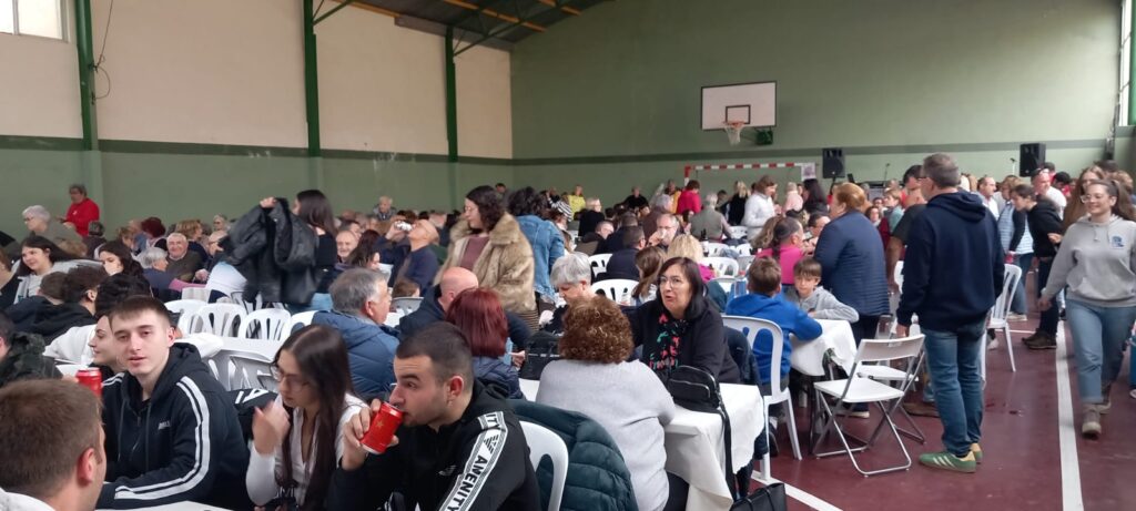 Posteriormente, los miembros de la asociación comenzaron a preparar la comida, paella y longaniza con patatas, que se repartió alrededor de las 15.00 horas a los 400 comensales.