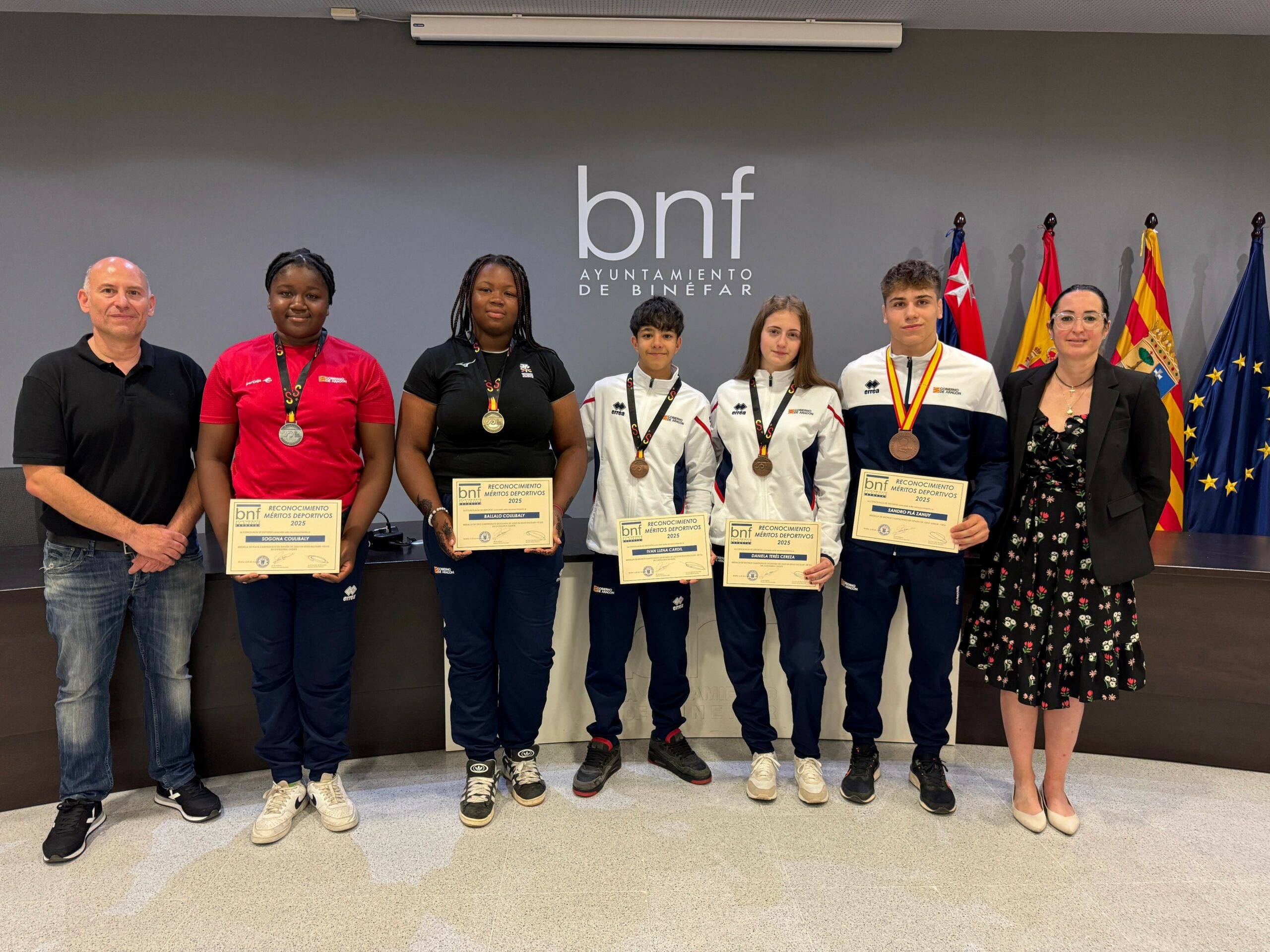 La concejal Oliván les ha felicitado por sus gestas y les ha entregado un diploma acreditativo del reconocimiento del Ayuntamiento a su actuación. Los homenajeados han sido los siguientes: Iván Llena, bronce en el Campeona de España en Edad Escolar Sub 15; Daniela Teres, bronce Campeonato de España en Edad Escolar, Sub18; Sogona Magassa, plata en el Campeonato de España en Edad Escolar Sub 18 +70 y bronce en la Copa de Europa, Oporto (Portugal); Ballalo Coulibaly, oro en el Campeonato de España en Edad Escolar Sub18 +70 y oro en la citada Copa de Europa, así como clasificada para el Campeonato de Europa Sub 21; Sandro Plá, bronce Campeonato de España Sub 21; Mama Coulibaly, bronce Campeonato de España Sub 21 y bronce Campeonato de España Universitario; Sergio García, bronce en el Campeonato de España Absoluto; y Moussa Macalou, bronce en la citada competición (ambos en la categoría 73 kg).
