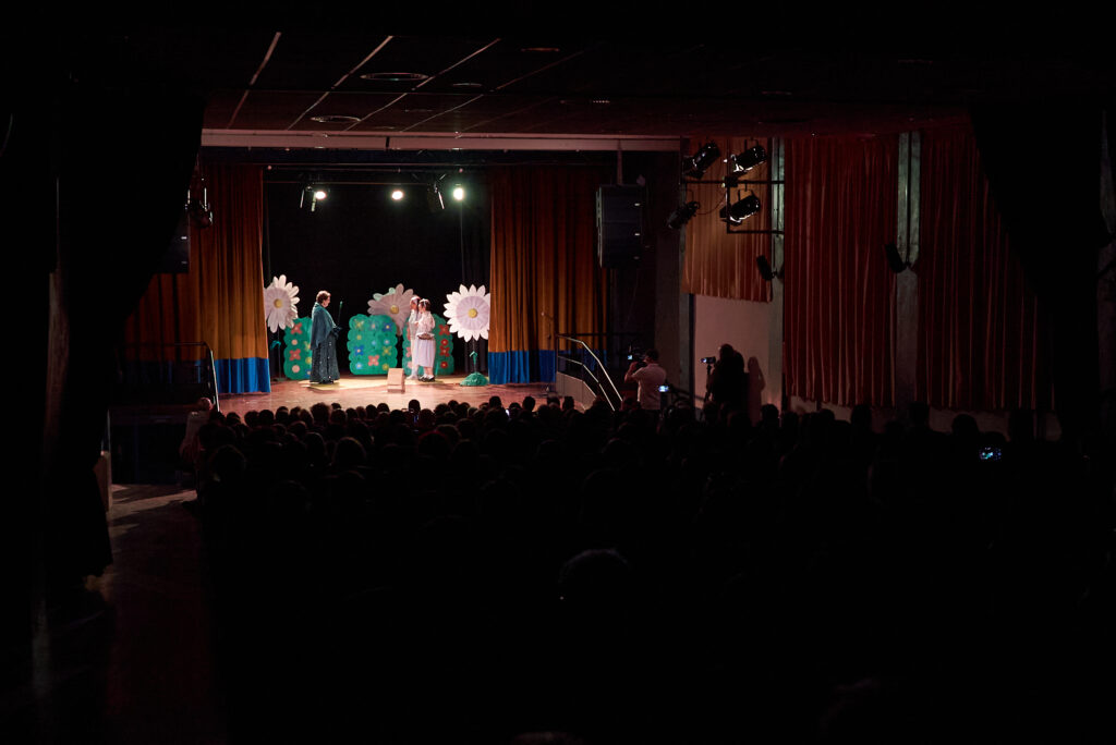 El prólogo a esta décimo primera edición tuvo lugar a las 19.00 en el Teatro Los Titiriteros de Binéfar con la puesta en escena de “Los zapatos rojos”, obra escrita y dirigida por el área de Juventud del Ayuntamiento de Binéfar e interpretada por los actores con diversidad funcional del Centro Ocupacional Nazaret de Cáritas Diocesana.