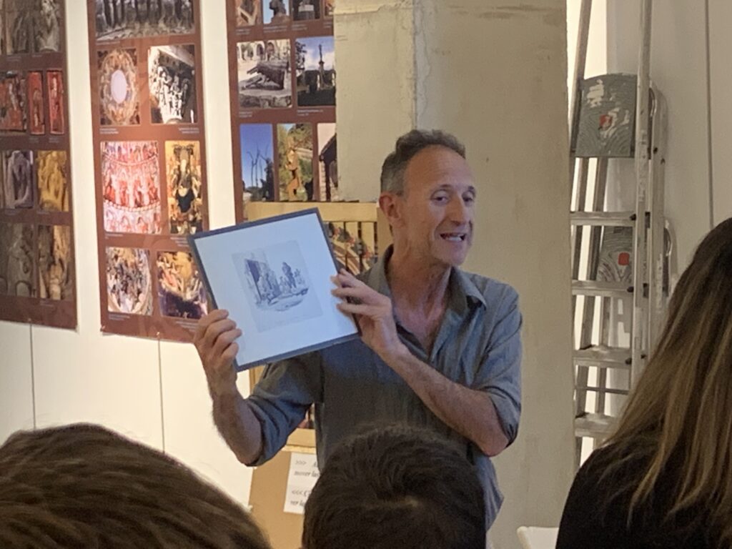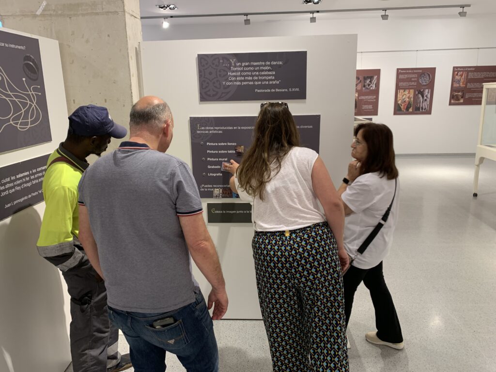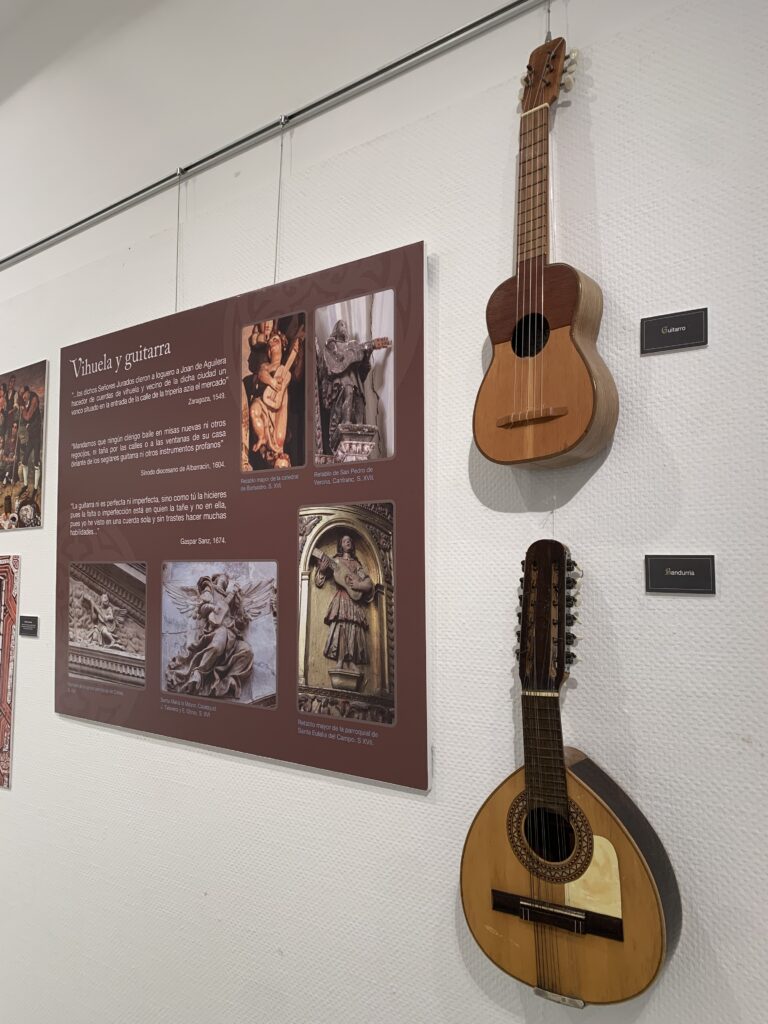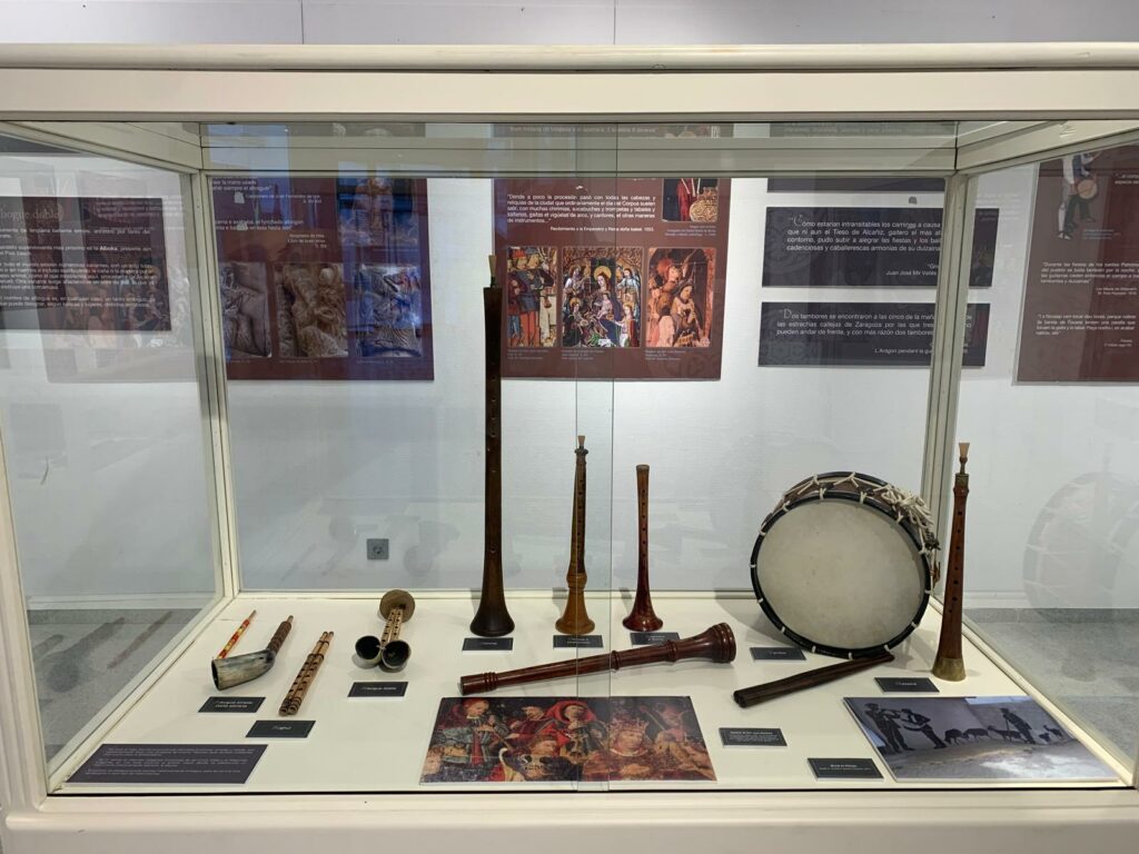 Paralelamente a la inauguración, antes de los animados brindis, los asistentes pudieron participar de la visita guiada a la exposición “Los sonidos de la imagen, colección dedicada a la iconografía musical en Aragón” en la Sala de Exposiciones del Ayuntamiento de Binéfar. Un recorrido guiado por los más de treinta instrumentos de la comunidad de Aragón y un centenar de imágenes artísticas las representaciones musicales del territorio.