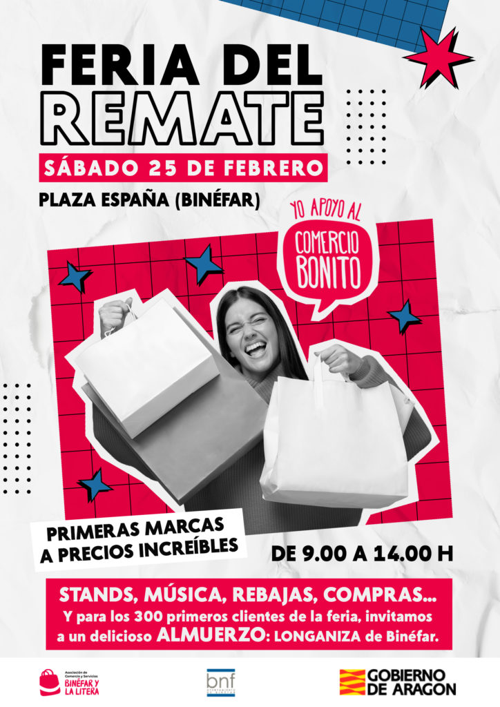 ¡¡¡El mejor plan !!! FERIA DEL REMATE EN BINÉFAR. Te esperamos en la Plaza España, este sábado 25 de febrero, en horario de 9 a 14 horas!!