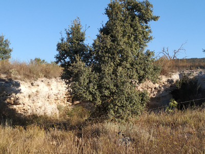 En primer lugar, nos dirigimos hacia las afueras del pueblo dirección a Saganta. A la altura de la báscula municipal, llegamos a la antigua cantera de tosca, toba o travertino, en el poljé de Saganta a Camporrells.