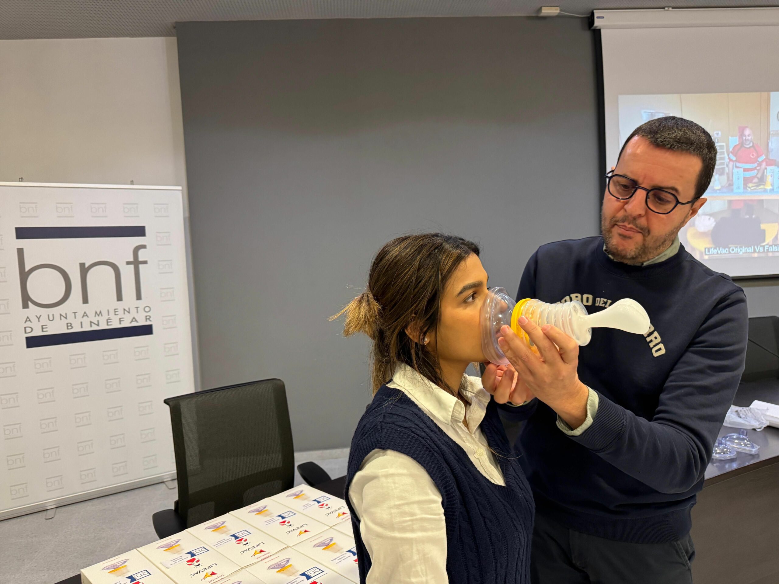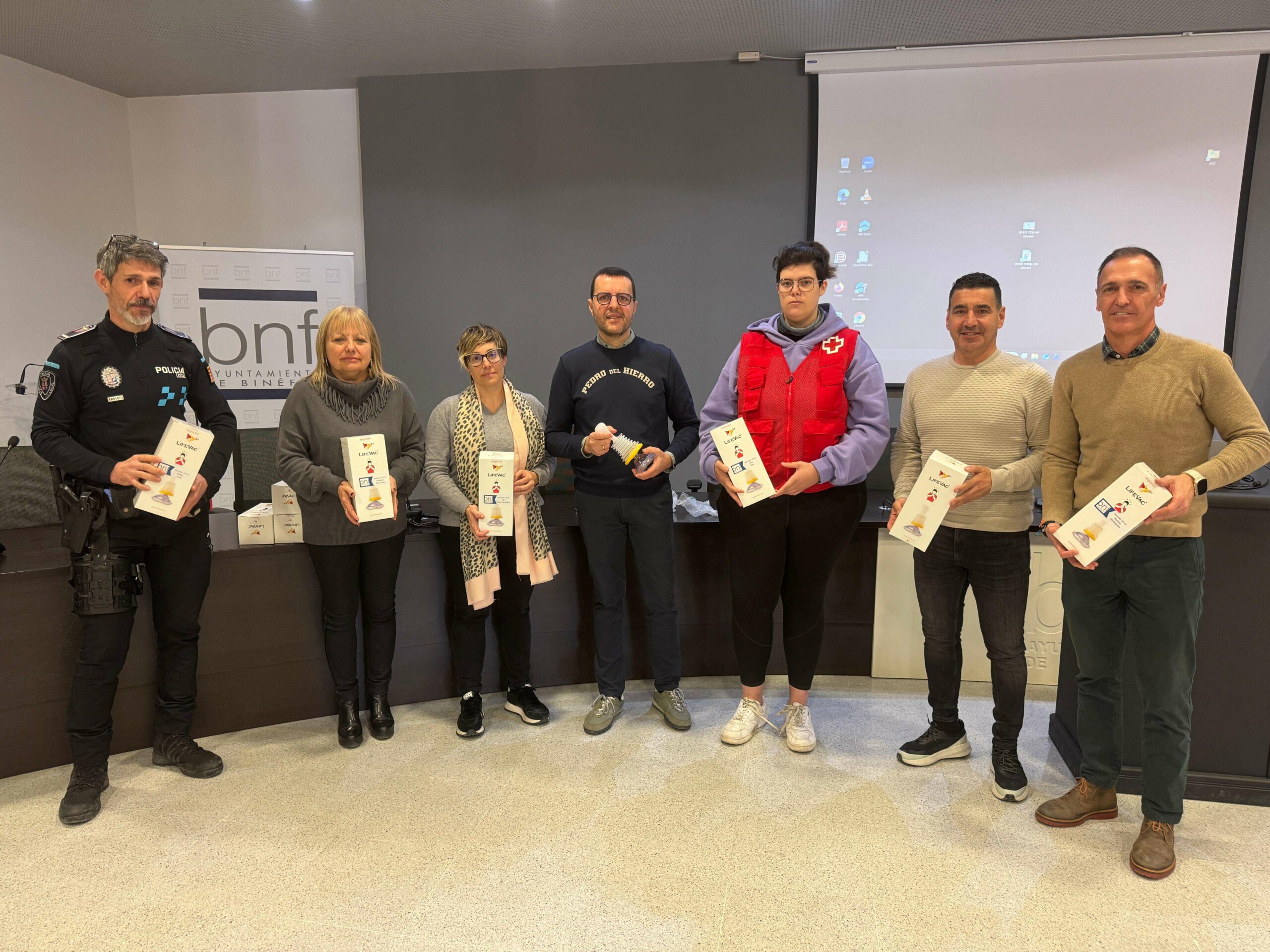 Desde el área de Educación y Sanidad, se han distribuido este mediodía una treintena de kits de mascarillas de emergencia para liberar las obstrucciones en las vías respiratorias en caso de atragantamientos a todos los centros educativos de Binéfar, en las instalaciones deportivas, espacios de ocio público concurridos, a la Comarca de La Litera, en el Centro de Salud, así como a la Policía Local y Cruz Roja, entre otros organismos.