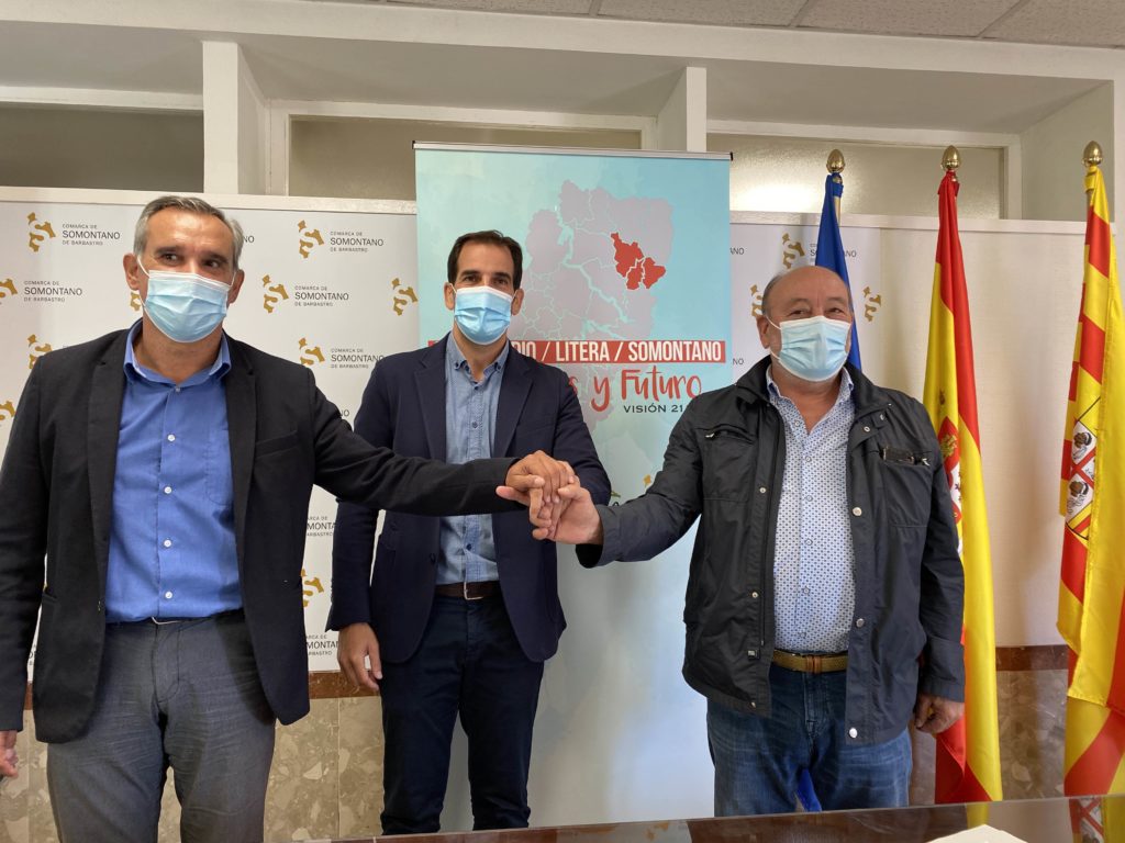 «Cuando ves las cifras sobre un papel, eres consciente del gran potencial que tienen nuestras comarcas y de todas las posibilidades de desarrollo y calidad de vida de sus ciudadanos. Y todo eso está a nuestro alcance». Ese ha sido el sentir común de los tres presidentes de las comarcas del Somontano, Daniel Gracia, del Cinca Medio, José Ángel Solans, y de La Litera, Josep Anton Chauvell, tras la primera reunión de trabajo conjunta, celebrada esta mañana en Barbastro y que marca el inicio del desarrollo de proyectos y la colaboración con entidades sociales, ayuntamientos y colectivos empresariales para conseguir impulsar las potencialidades de tres comarcas complementarias.