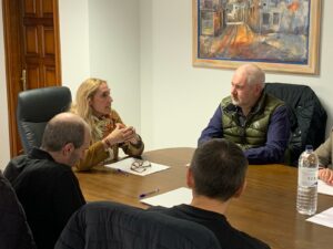 Nos encontramos con Mercé en uno de los establecimientos colaboradores, Bodega Isábal, quienes donan una serie de artículos para sortear. Mercé se ha acercado hasta Binéfar para recoger en la tienda estos productos, así como unas publicaciones que también cede el CELLIT, así que la conversación transcurre en un ambiente, tan poco habitual como acogedor, como es una bodega.