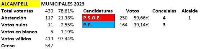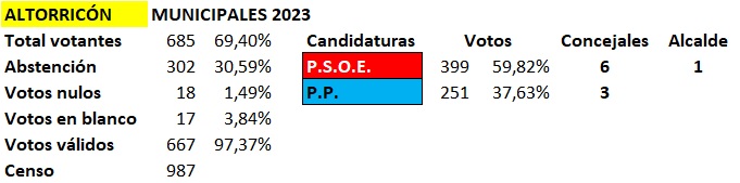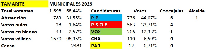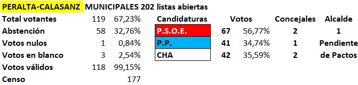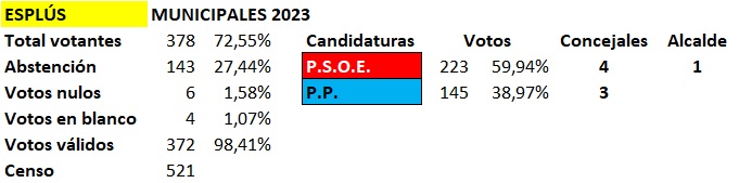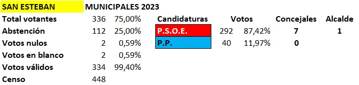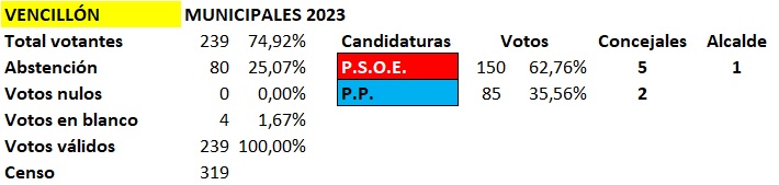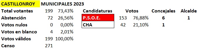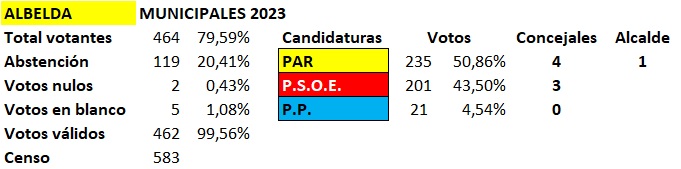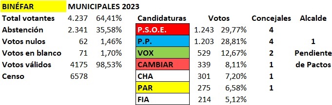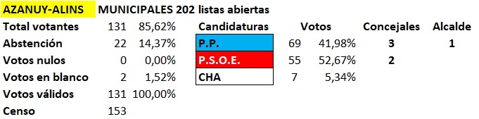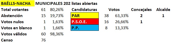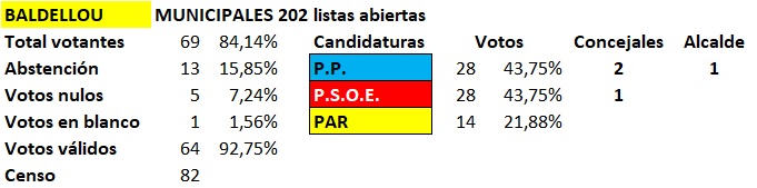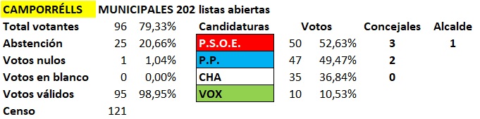 Resumen detallado por candidaturas, número de votos y porcentajes en cada uno de los municipios de la comarca.