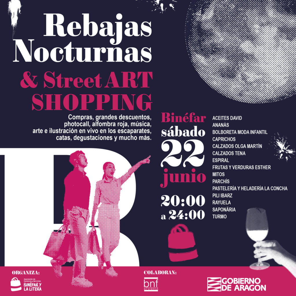 La Noche de las Rebajas y Street Art regresa con fuerza al centro de Binéfar el próximo sábado 22 de junio. En su 17ª edición, la ciudad se transformará en un vibrante epicentro de compras, arte y gastronomía ya que la Asociación de Comercio y Servicios de Binéfar y La Litera ha adelantado su fecha habitual para coincidir con la iniciativa de la Ruta del Vino Somontano, , que por primera vez recala en la localidad. Organizado por la Asociación de Comercio, en colaboración con el Ayuntamiento de Binéfar y el Gobierno de Aragón, este evento promete una noche inolvidable.