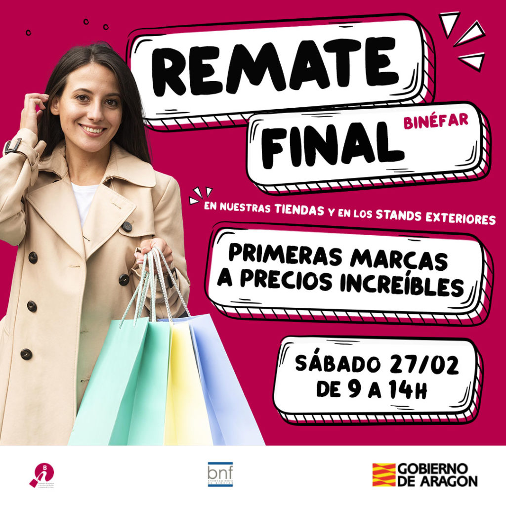 La Asociación de Comercio y Servicios de Binéfar y La litera organiza la XXXII edición de REMATE FINAL, que tendrá lugar en Binéfar el sábado 27 de febrero de 9 a 14h