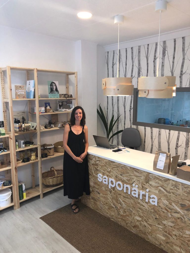 Me llamo Alba Chesa, mi marca es Saponaria organic y nos dedicamos a la elaboración de productos naturales para la higiene corporal de toda la familia. Entonces hace 10 años que empezamos con las primeras formaciones de elaboraciones de jabón en frío y a partir de ahí fuimos evolucionando y creando más productos hasta el día de hoy que hemos decidido abrir esta tienda física donde no sólo puedes encontrar nuestros productos sino también podeis encontrar productos cosméticos naturales y orgánicos de otras marcas que trabajan con nosotros en el mismo laboratorio, y sobre todo que también me parecía muy necesario, productos a granel para el día a día.