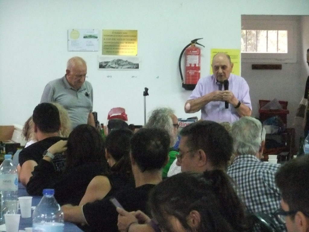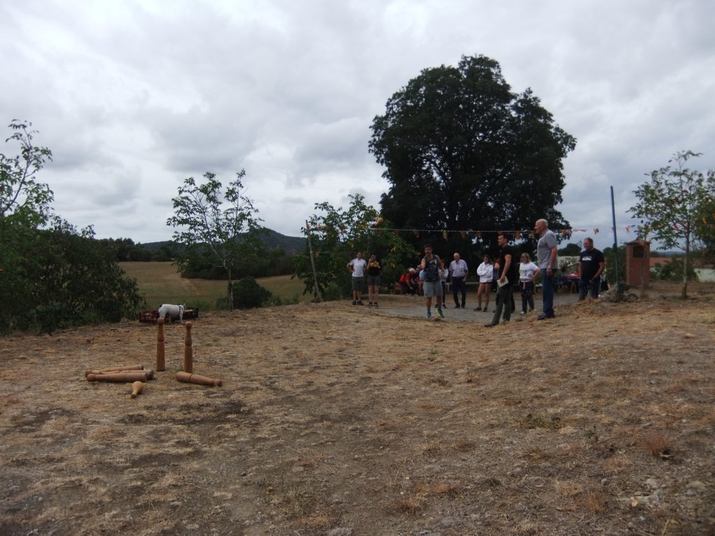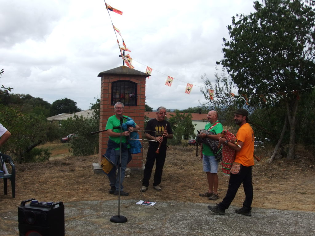 Esta vez, de nuevo las gaitas han sonado de manos de LA COBLA RIBAGORÇANA de Benabarre en la era caserrina adornada al lado del pilaret mientras han ido explicando cada una de las piezas y cantes al son de las gaitas, clarinete y pandereta desde el canto de llegada (tonada d´arribada) hasta el de despedida (tonada de comiat) en ribagorzano que dice: “Valtros us quedeu en lo mal d´orella (bis); nantros mo´n anam en la bolsa pllena”(bis)= (Vosotros os quedáis con el mal de oidos, nosotros nos vamos con la bolsa llena).
