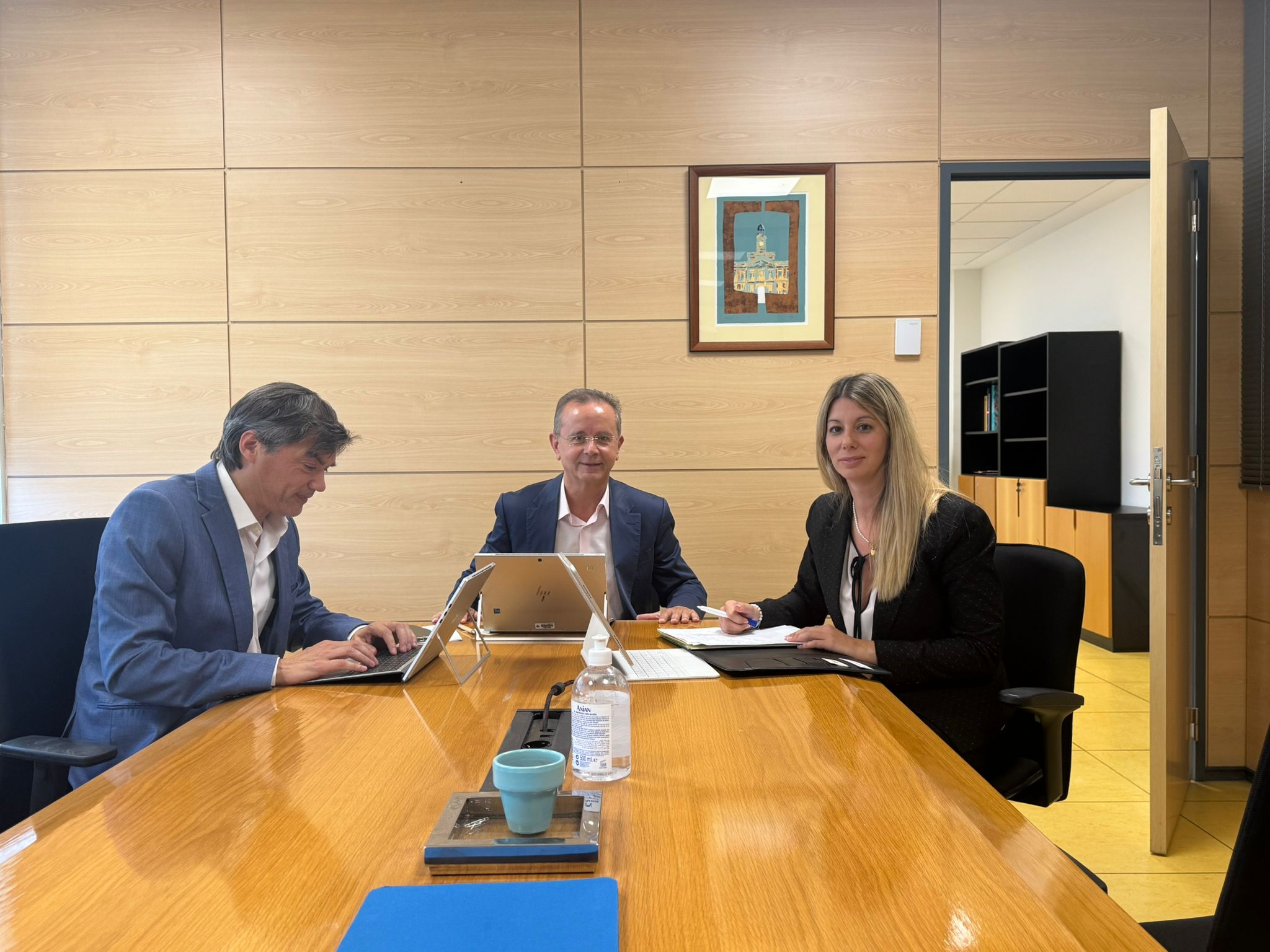 La presidenta de la Comisión de Municipios de Menor Población de la Federación Española de Municipios y Provincias (FEMP) y presidenta de la Comarca de La Litera/La Llitera, Tania Solans, ha mantenido una reunión con Francisco Ferrer, secretario general de Correos, y José Miguel Moreno, director de Estrategia, Sostenibilidad y Marca de Correos.