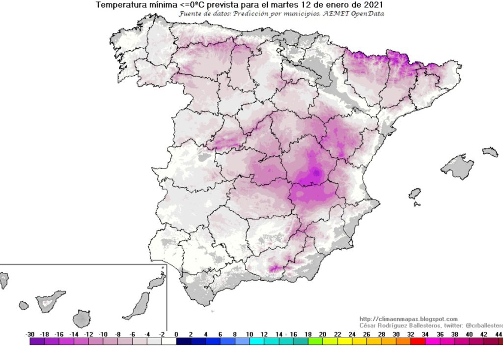 Pero primero, hagamos un poco de resumen y es que durante este mes de enero, hemos registrado 24 días de helada, de éstos 20 han sido consecutivos (se vienen produciendo heladas continuas desde el pasado día 12 de enero). Aunque el primer mes del año, no se caracteriza por ser un mes lluvioso, deciros que este año todavía se ha acusado más este hecho, de modo que los recuentos pluviométricos han quedado por debajo de los 5 mm.