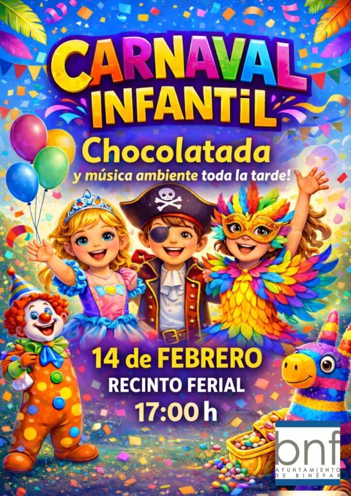 La primera de las tres fiestas en comenzar será la dirigida para el público más menudo. Será a las 17.00 cuando el recinto ferial reúna a los niños y niñas para disfrutar de talleres, actividades para toda la familia, bailes y juegos dirigidos, una chocolatada y un dj que dará ambiente musical durante toda la tarde. Paralelamente, en el Centro Joven se desarrollará la fiesta de Carnaval desde las 17.00 a las 20.00 h. En ella habrá concurso de disfraces con premios en metálico, juegos, merienda y muchas más sorpresas.