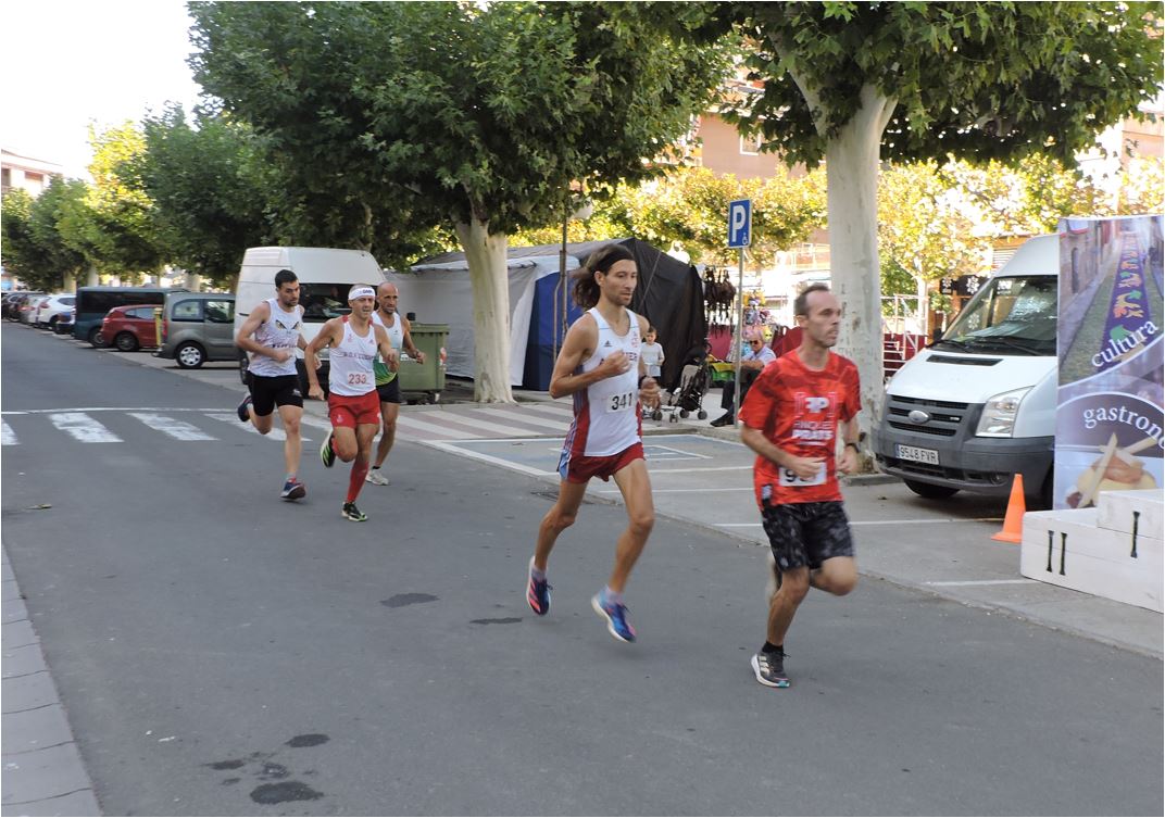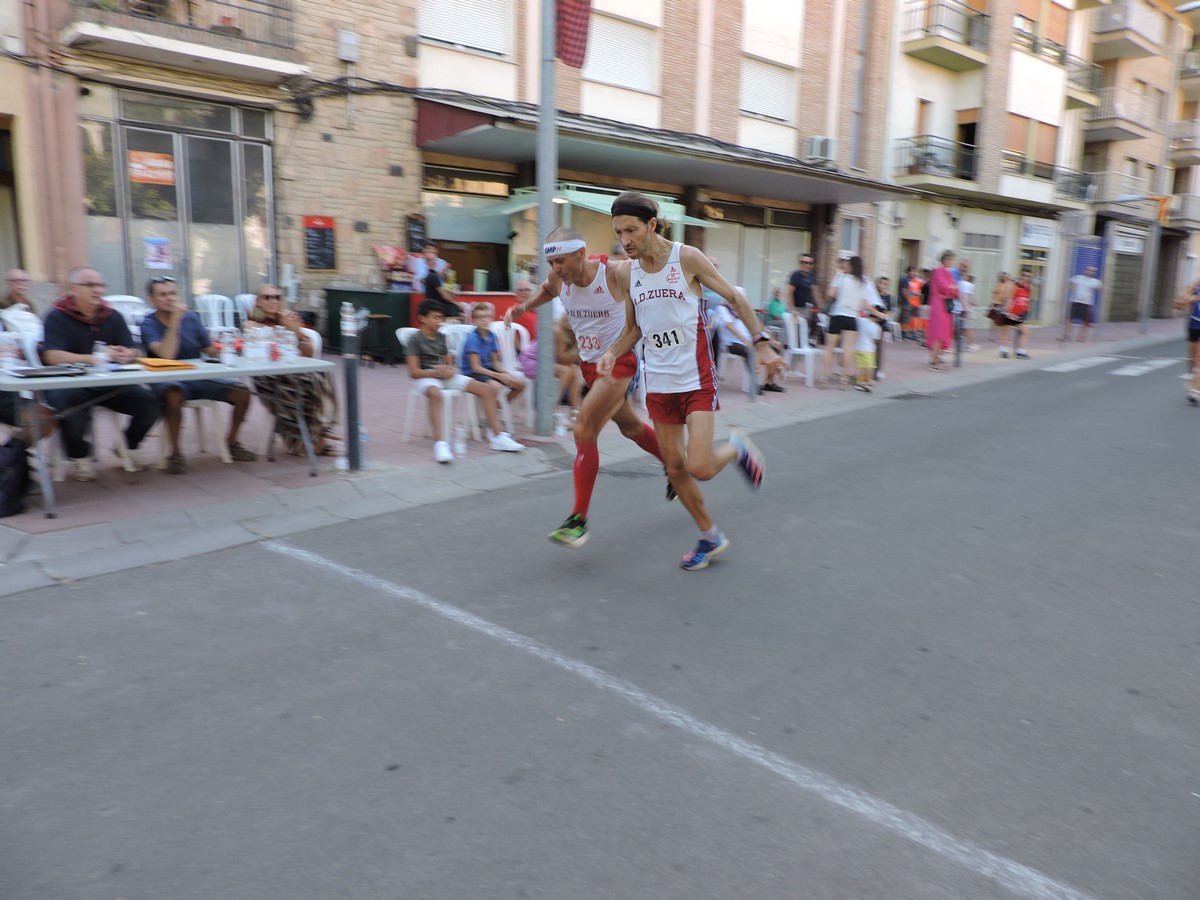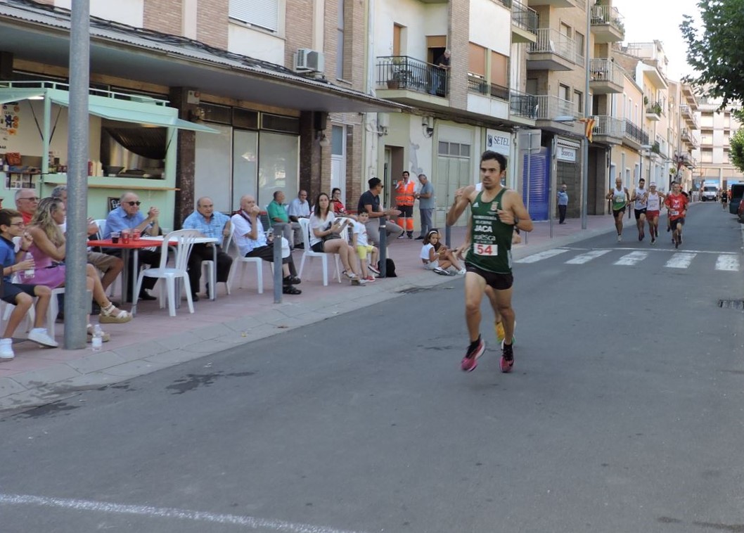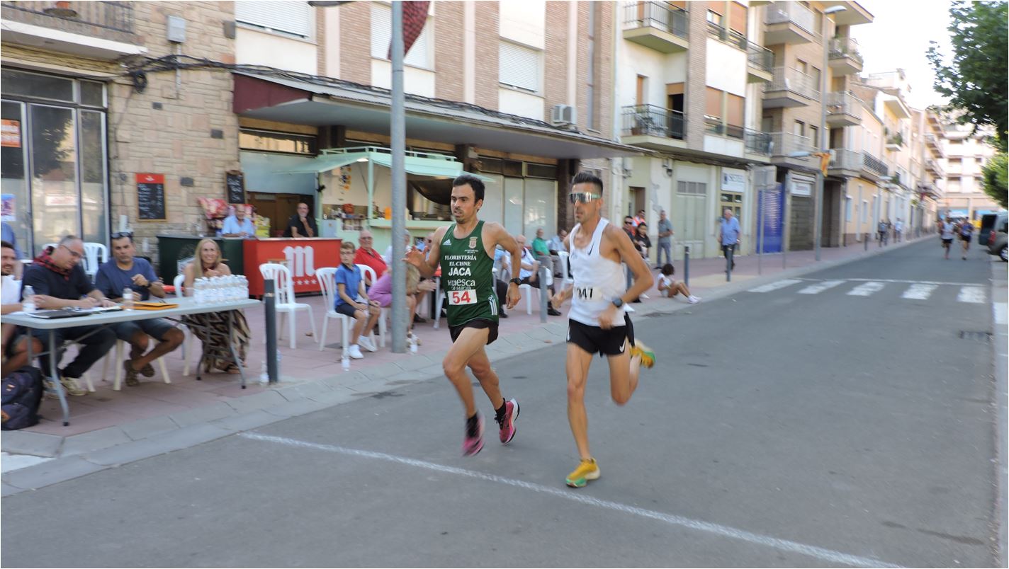 La animación en la carrera fue constante, con disputas de primas espectaculares. Desde la primera vuelta tomaron el mando los maratonianos Alberto Puyuelo, de Jaca, y Xavi Tomasa, de Berga (Barcelona). Haciendo la goma permanecieron durante varias vueltas los corredores César Mur, de Binéfar, Javier Castell y Alberto Susín, de Monzón, y Denis Lorda y Nacho Dieste, ambos de Zuera.