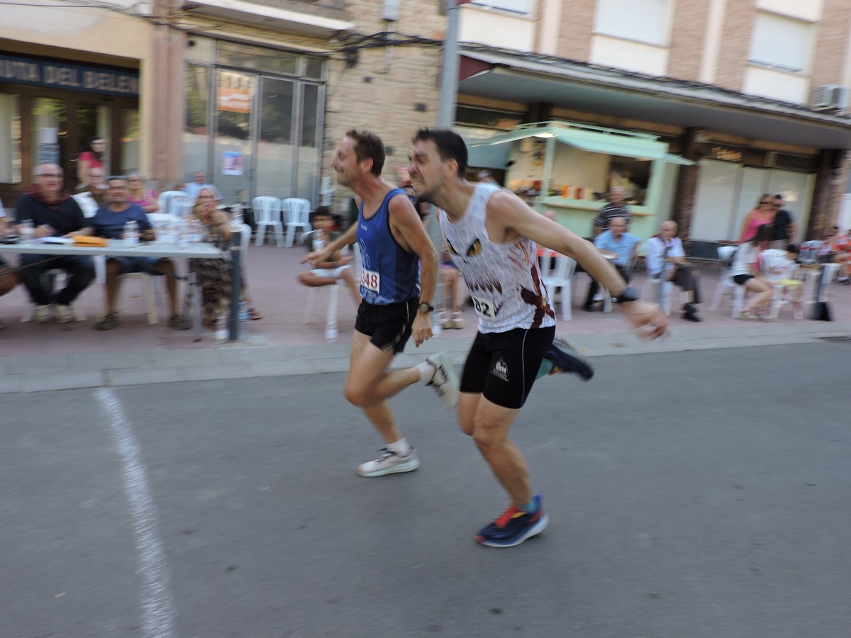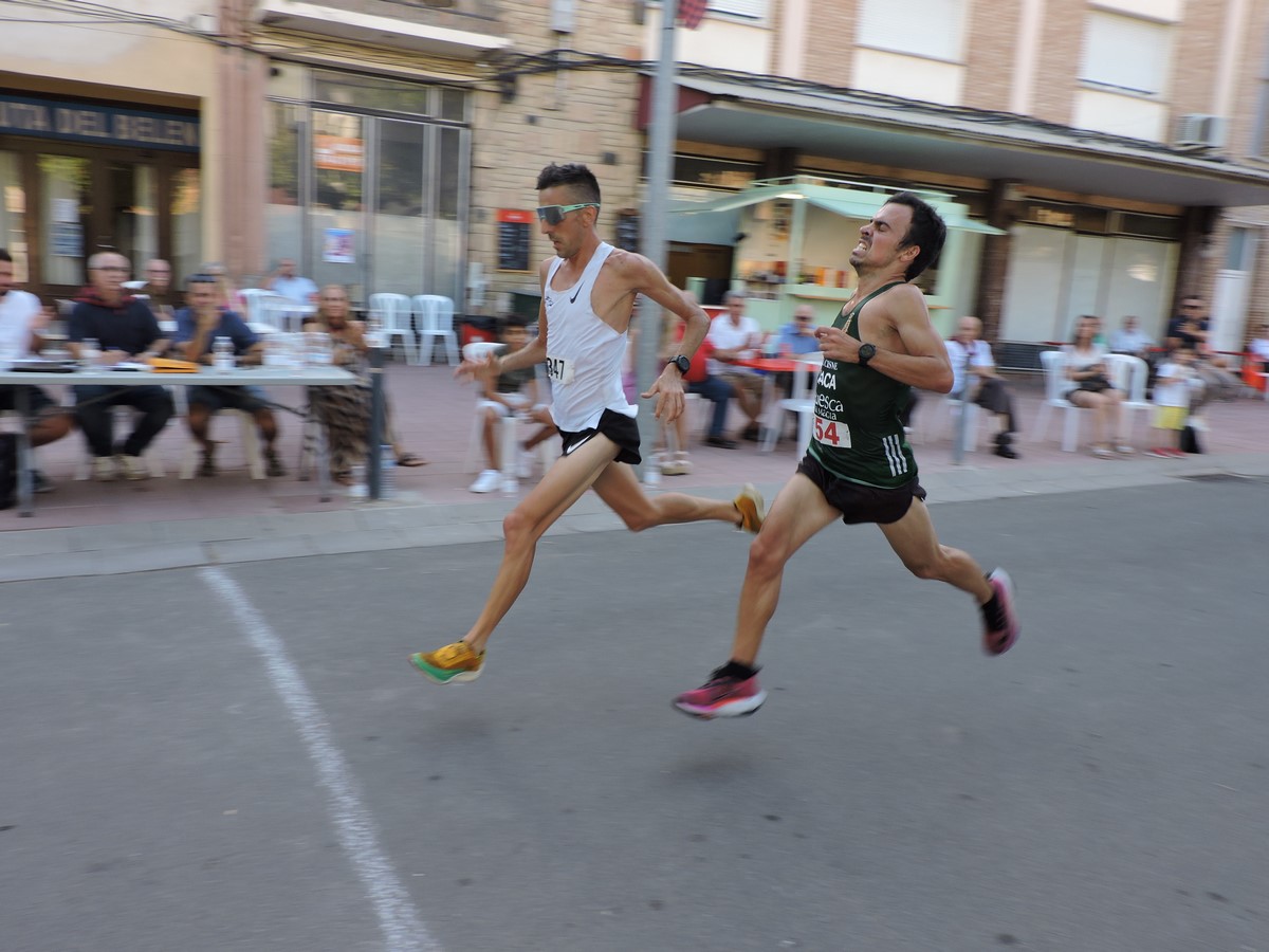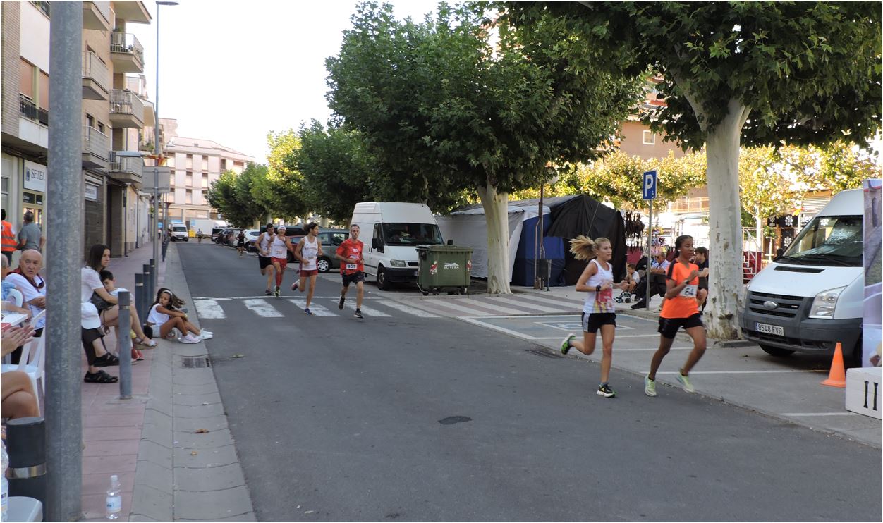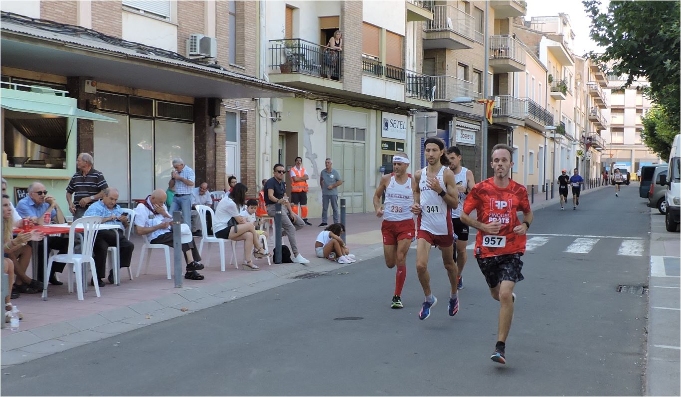La animación en la carrera fue constante, con disputas de primas espectaculares. Desde la primera vuelta tomaron el mando los maratonianos Alberto Puyuelo, de Jaca, y Xavi Tomasa, de Berga (Barcelona). Haciendo la goma permanecieron durante varias vueltas los corredores César Mur, de Binéfar, Javier Castell y Alberto Susín, de Monzón, y Denis Lorda y Nacho Dieste, ambos de Zuera.